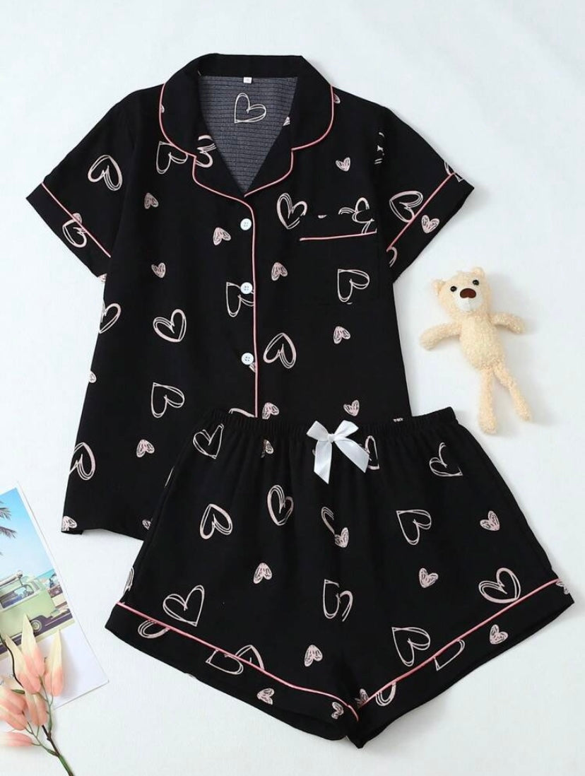 O Conjunto de Pijama com Estampa de Coração é perfeito para mulheres que desejam unir praticidade e estilo na hora de dormir. Composto por camisa de manga curta e shorts, traz um design delicado e moderno, ideal para noites de descanso com muito conforto.