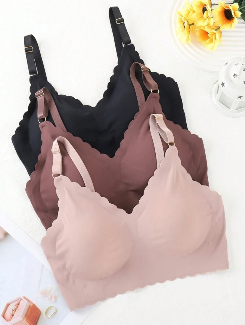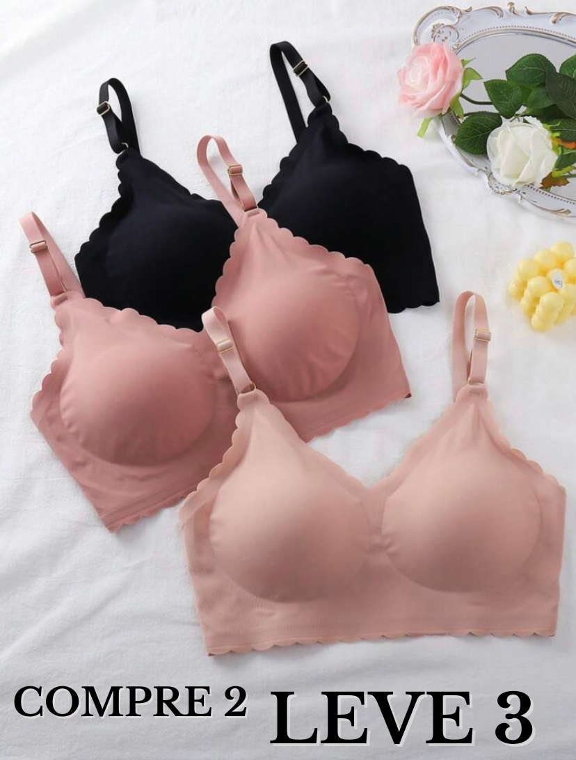 O Kit com 3 Sutiãs foi criado para mulheres que buscam praticidade e distinção em ocasiões especiais. Com bojo moldado removível e barra ondulada sem costura , proporciona leve sustentação e caimento natural em vestidos e blusas que não sejam longos ou com detalhes.