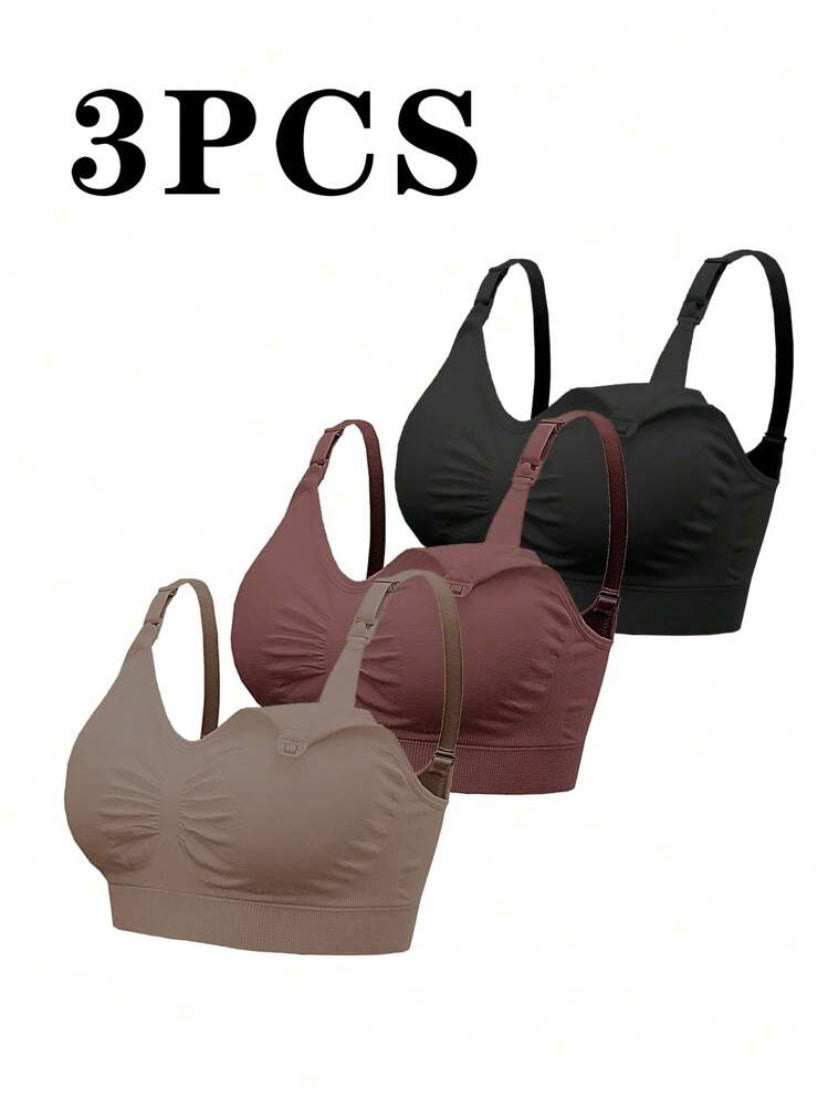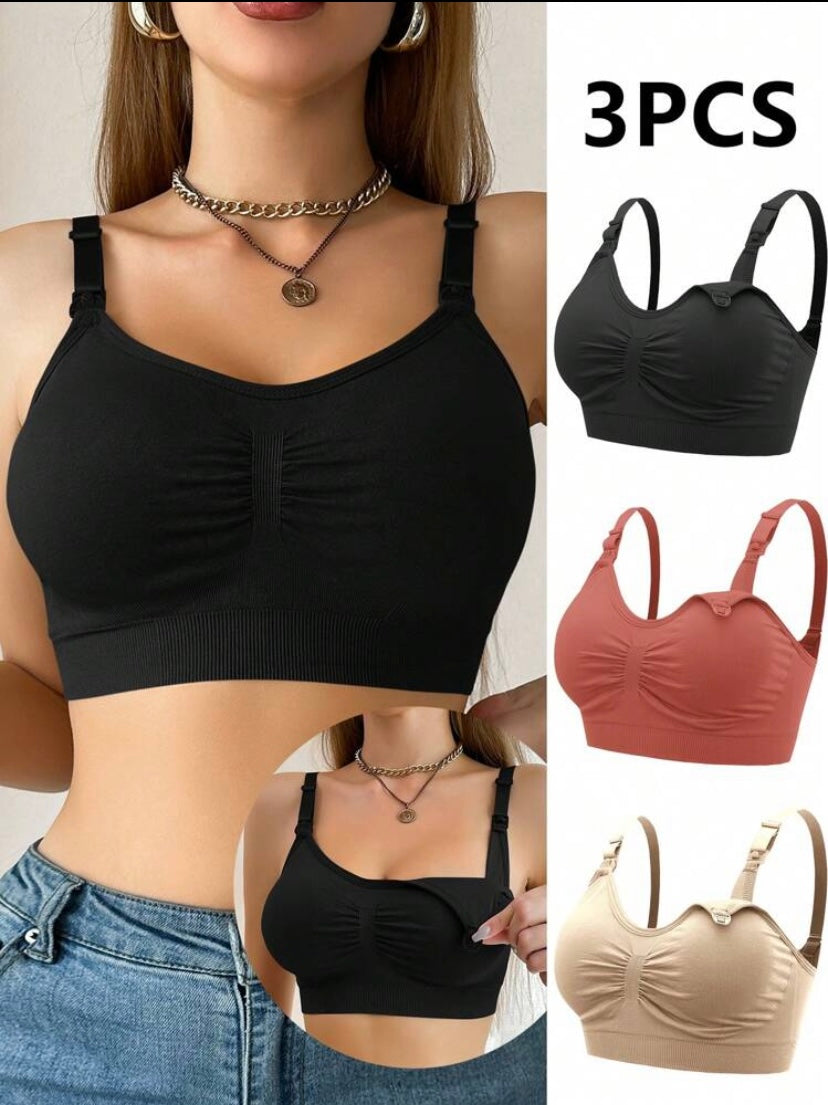 Kit com 3 Sutiãs de Amamentação Confortáveis – Sem Aro e em Cor Lisa