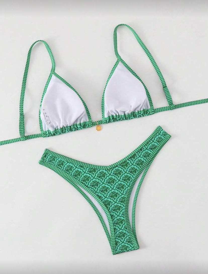 O Swim Mod Conjunto de Maiô Bikini de 2 Peças traz uma estampa aleatória exclusiva que adiciona personalidade e frescor ao visual. Seu top com alças tipo espaguete valoriza os ombros e o colo de forma delicada, enquanto a calcinha de corte alto alonga a silhueta e proporciona um toque moderno e sexy.
